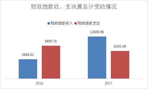 2017年度财政拨款收入总计12609.98万元,与2016年收入相比,财政拨款收入增加6741.36万元,增长115%。