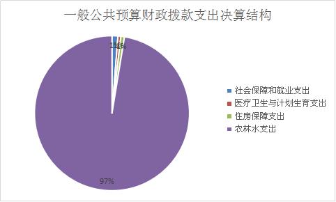 2017年一般公共预算财政拨款支出8240.48万元,主要用于以下方面:社会保障和就业支出101.44万元,占1%;医疗卫生支出50.06万元,占1%;住房保障支出61.23万元,占1%;农林水支出8027.75万元,占97%。