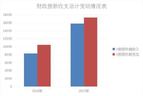 2017年度财政拨款收入总计15801.79万元,与2016年相比,财政拨款收入增加7466.42万元,增加89.58%.支出总计17349.98万元,与2016年相比,财政拨款支出增加6840.38万元,增加65.1%。