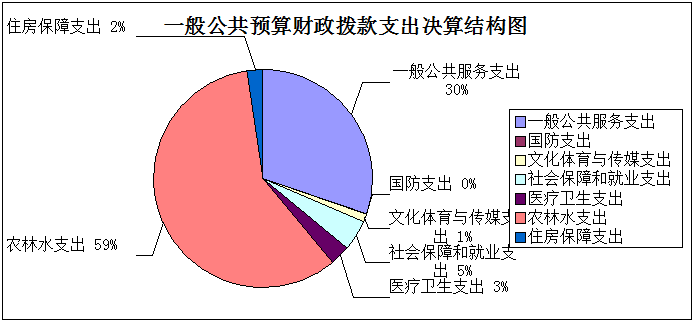 2017年一般公共预算财政拨款支出560.52万元,主要用于以下方面:一般公共服务支出169.52万元,占30.24%;国防支出0.4万元,占0.07%;文化体育与传媒支出6.50万元,占1.16%;社会保障和就业支出25.55万元,占4.56%;医疗卫生支出16.68万元,占2.97%;农林水支出328.70万元,占58.64%;住房保障支出13.17万元,占2.35%。