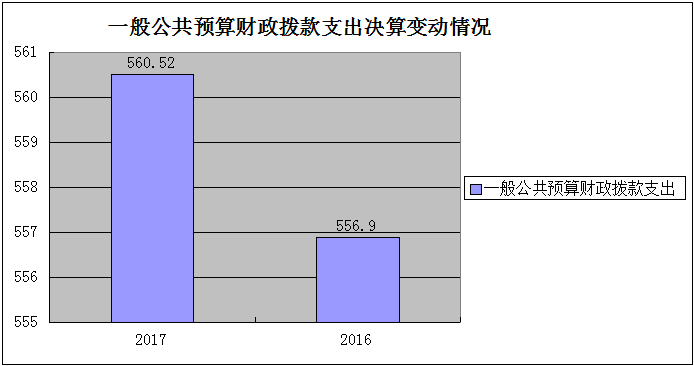 2017年度一般公共预算财政拨款支出560.52万元,占本年支出合计的92.94%。与2016年相比,一般公共预算财政拨款增加3.62万元,增长0.65%。