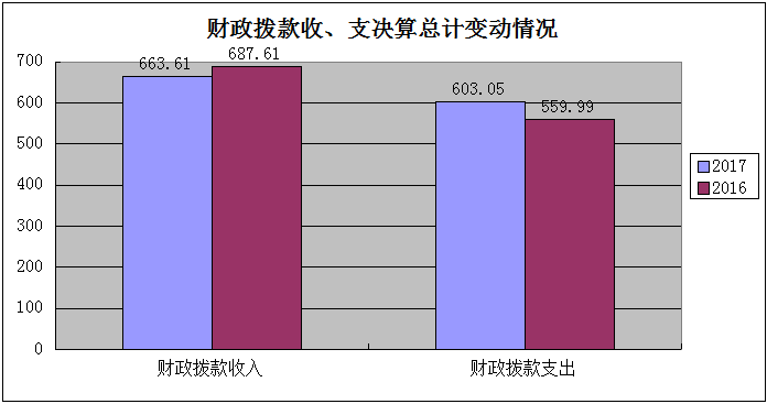2017年度财政拨款收入总计663.61万元。与2016年相比,财政拨款收入总计减少24万元,下降3.49%。