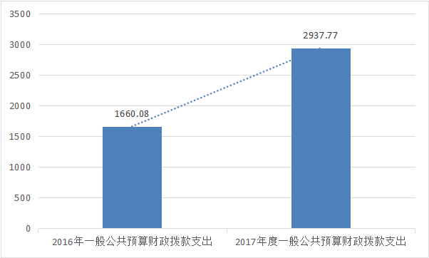2017年度一般公共预算财政拨款支出2937.77万元,占本年支出合计的100%。2016年一般公共预算财政拨款支出1660.08万元,2017年较2016年支出增加1277.69万元,增长76.97%,主要原因系2017年度较2016年度新村建设项目支出增幅较大。