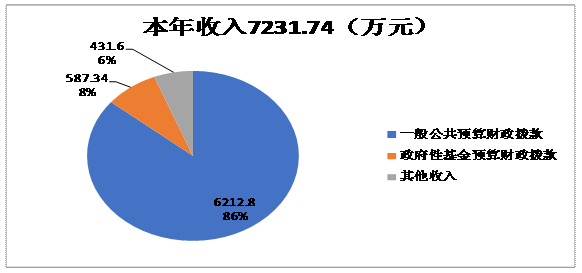 2017年单位本年收入合计7231.74万元,其中:一般公共预算财政拨款收入6212.8万元,占85.91%;政府性基金预算财政拨款收入587.34万元,占8.12%;其他收入431.6万元,占5.97%。