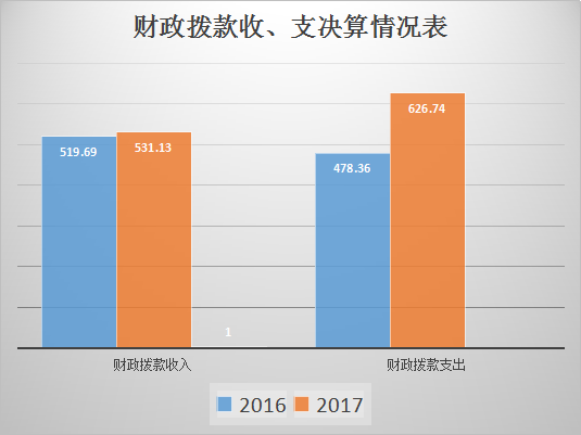 2017年度财政拨款收入531.13万元,与2016年相比,财政拨款收入增加11.44万元,增加2.2%