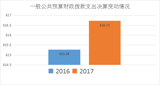 2017年度一般公共预算财政拨款支出616.72万元,占本年支出合计的98.4%。与2016年相比,一般公共预算财政拨款增加1.44万元,增长0.28%。