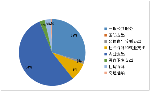 2017年一般公共预算财政拨款支出666.53万元,主要用于以下方面:一般公共服务支出196.7万元,占29.51%;国防支出0.8万元,占0.12%;文体育与传媒支出6.48万元,占0.97%;社会保障和就业支出57.92万元,占8.69%;农业支出363.29万元,占54.50%;医疗卫生支出16.92万元,占2.53%;住房保障支出19.42万元,占2.91%;交通运输支出5万元,占0.75%.