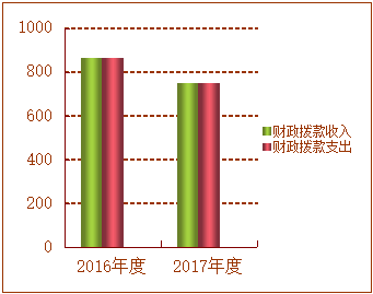 2017年度财政拨款收入总计747.07万元。与2016年相比,财政拨款收入减少117.27万元,下降13.6%。