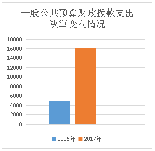 2017年度一般公共预算财政拨款支出16168.03万元,占本年支出合计的52.14%。与2016年相比,一般公共预算财政拨款增加11231.32万元,增长227.51%。