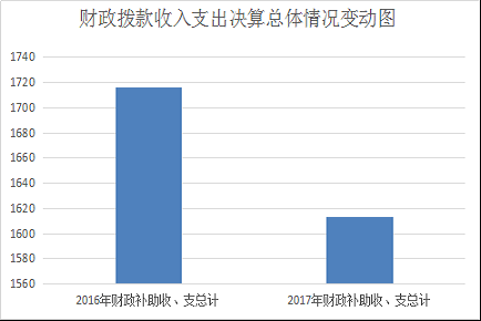 2017年度一般公共预算财政拨款支出1613.41万元,占本年支出合计的98.9%。与2016年相比,一般公共预算财政拨款减少102.99万元,下降16.7%。