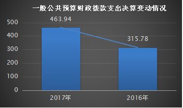 2017年度一般公共预算财政拨款支出463.94万元,占本年支出合计的100%。与2016年相比,一般公共预算财政拨款支出增加148.16万元,增长46.92%。