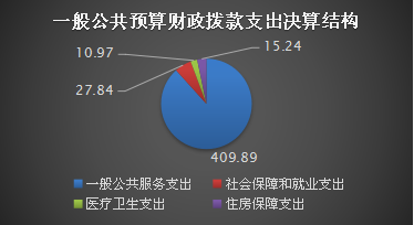 2017年一般公共预算财政拨款支出463.94万元,主要用于以下方面:一般公共服务支出409.89万元,占88.35%;社会保障和就业支出27.84万元,占6%;医疗卫生支出10.97万元,占2.36%;住房保障支出15.24万元,占3.28%。