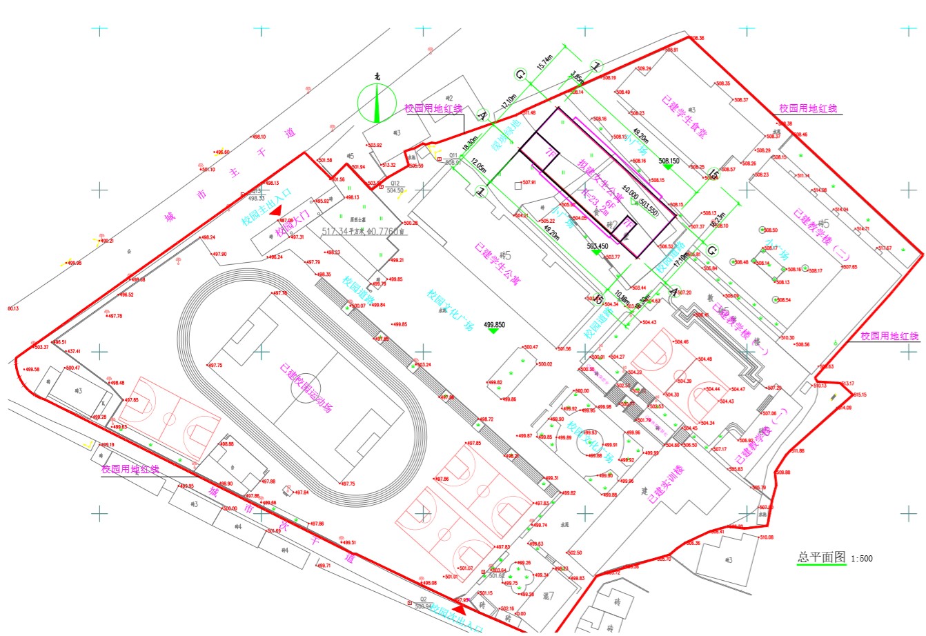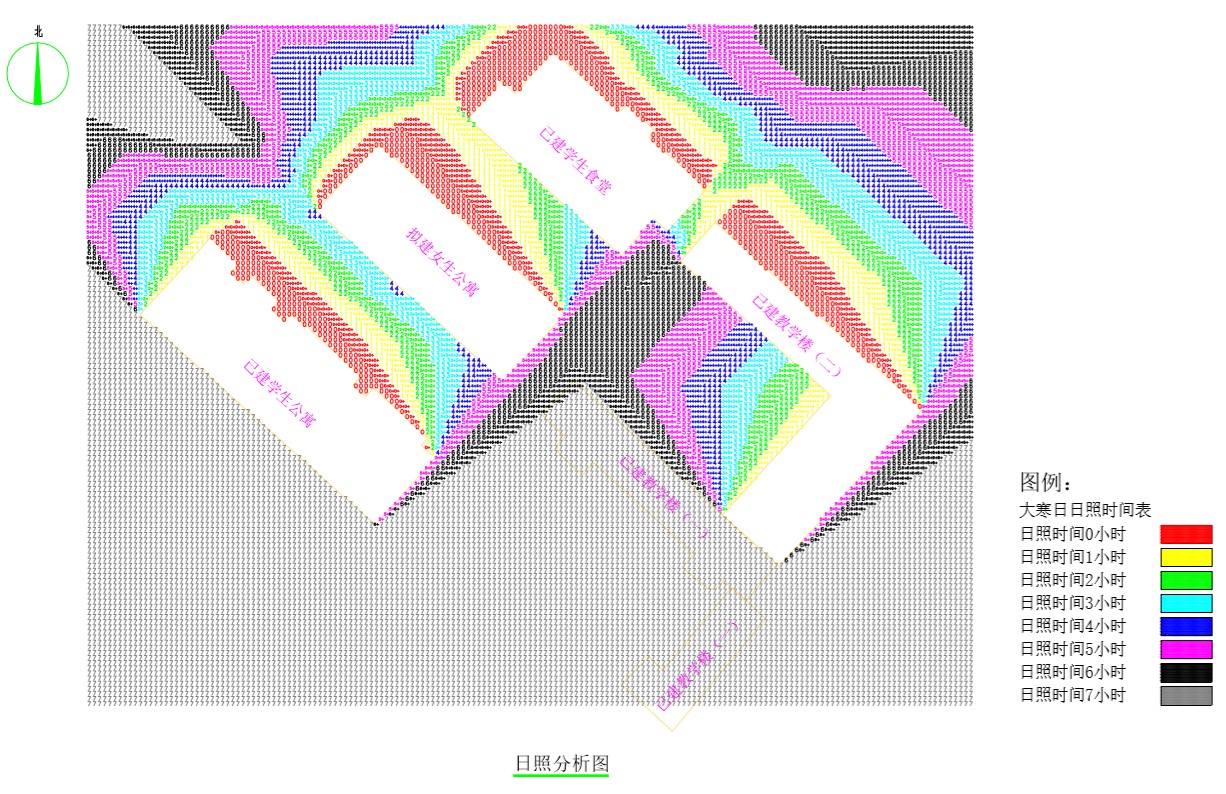 拟建方案经济技术指标:总校园建筑面积24746.73平方米,其中已建建筑面积19447.87平方米,新建女生公寓5298.86平方米。容积率0.9,建筑密度19.33%,绿地率30.3%,停车位42辆,新建女生公寓建筑层数:六层。