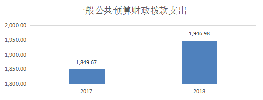 2018年一般公共预算财政拨款支出1,946.98万元,占本年支出合计的100%。与2017年相比,一般公共预算财政拨1,849.67万元款增加97.31万元,增长5.26%。主要变动原因是2018年人员调资变化较大,另下达了法官绩效奖金的支出增加。