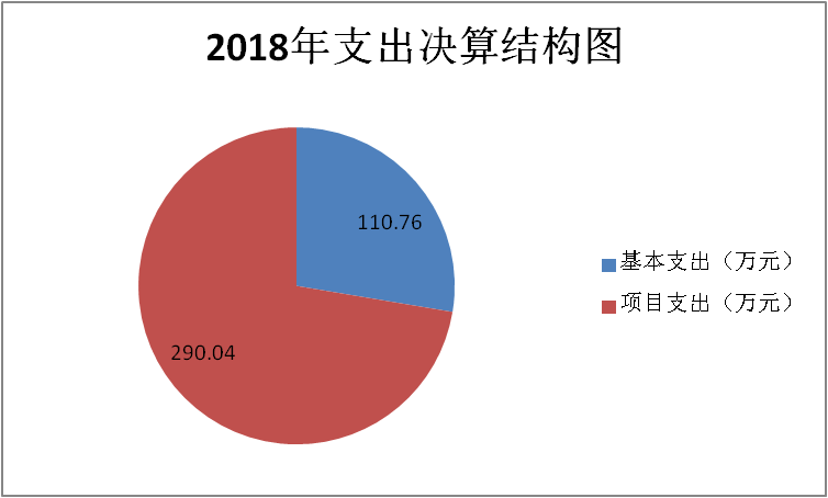 (二)部门财政资金支出情况:2018年本年财政支出合计401.2万元,其中:基本支出110.76万元,占28%;项目支出290.04万元,占72%;