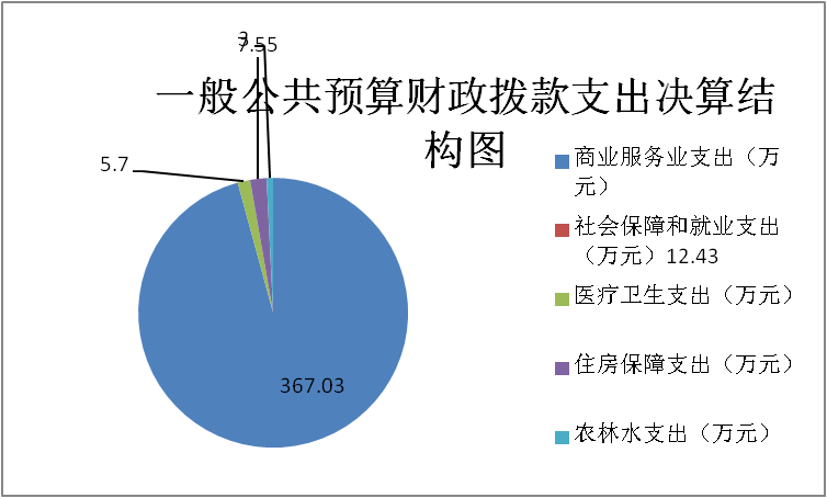 2018年一般公共预算财政拨款支出395.7万元,主要用于以下方面:商业服务业等(类)支出367.03万元,占92%;农林水支出(类)3万元,占0.7%;社会保障和就业(类)支出12.43万元,占3%;医疗卫生支出5.7元,占1.4%;住房保障支出7.55万元,占2%。