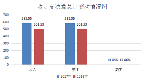 本部门2018年度收入总计501.53万元,支出总计501.53万元。与2017年决算数相比,收入减少82.02万元、减少14.06%,支出减少82.02万元、减少14.06%,主要原因是驻村工作人员经费下划至乡镇,人员减少2人,其中:退休1人,开除公职1人;由于人员的减少,相应的工资、各类保险、公积金等人员支出减少;2017年有伤葬抚恤支出,2018年无此项支出。