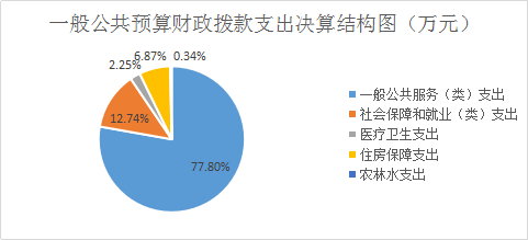 2018年一般公共预算财政拨款支出501.2万元,主要用于以下方面:一般公共服务(类)支出389.95万元,占77.8%;社会保障和就业(类)支出63.83万元,占12.74%;医疗卫生支出11.26万元,占2.25%;住房保障支出34.41万元,占6.87%;农林水支出1.75万元,占0.34%。