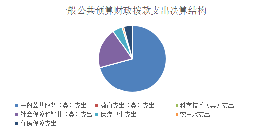 2018年一般公共预算财政拨款支出184.66万元,主要用于以下方面:一般公共服务(类)支出130.70万元,占70.78%;教育支出(类)0万元,占0%;科学技术(类)支出0万元,占0%;社会保障和就业(类)支出36.18万元,占19.59%;医疗卫生支出8.65万元,占4.69%;农林水支出1.5万元,占0.81%;住房保障支出7.63万元,占4.13%。
