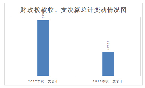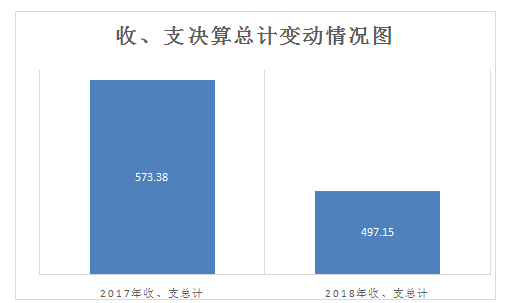 2018年度收、支总计497.15万元。与2017年相比,收、支总计各减少76.23万元,下降18.29%。主要变动原因是为本年部分未列支。
