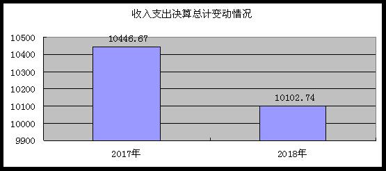 2018年度收、支总计10102.74万元。与2017年相比,收、支总计各减少343.93万元,下降3.29%。主要变动原因是2018年增加看守所、拘留所建设经费支出。
