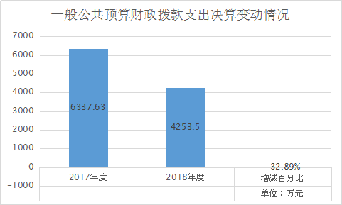 2018年一般公共预算财政拨款支出4253.5万元,占本年支出合计的100%。与2017年相比,一般公共预算财政拨款减少2084.13万元,下降32.89%。主要变动原因是国家对保障性住房建设资金投入力度大幅下降所致。