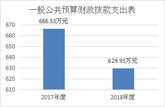 2018年一般公共预算财政拨款支出629.93万元,占本年支出合计的99.37%。与2017年相比,一般公共预算财政拨款减少36.6万元,下降5.49%。主要变动原因是部分经费未列支。