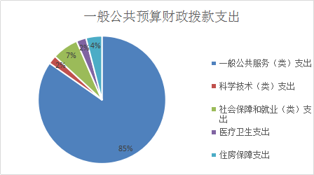 2018年一般公共预算财政拨款支出185.37万元,主要用于以下方面:一般公共服务(类)支出157.06万元,占84.73%;教育支出(类)0万元,占0%;科学技术(类)支出4万元,占2.16%;社会保障和就业(类)支出12.25万元,占6.61%;医疗卫生支出4.59万元,占2.48%;住房保障支出7.46万元,占4.02%。