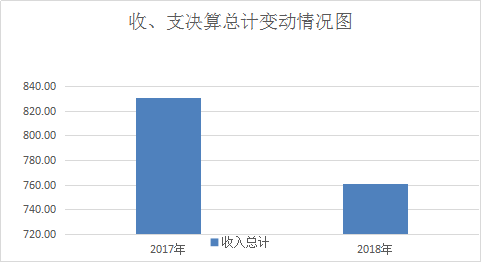 2018年度收、支总计821.91万元。与2017年相比,收、支总计各减少9.19万元,下降1%。主要变动原因是压缩办公经费。