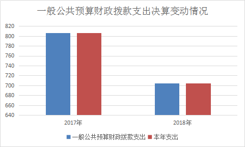 2018年一般公共预算财政拨款支出704.12万元,占本年支出合计的100%。与2017年相比,一般公共预算财政拨款减少102.7万元,下降14.59%。主要变动原因是脱贫攻坚项目减少。