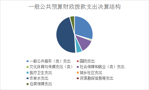 2018年一般公共预算财政拨款支出704.12万元,主要用于以下方面:一般公共服务(类)支出207.76万元,占29.51%;国防支出0.8万元,占0.11%。文化体育与传媒支出(类)7.03万元,占1%;社会保障和就业(类)支出87.05万元,占12.36%;医疗卫生支出37.62万元,占5.34%;城乡社区支出5.01万元,占0.71%;农林水支出328.01万元,占46.58%;资源勘探信息等支出1万元,占0.14%;住房保障支出29.84万元,占4.28%。