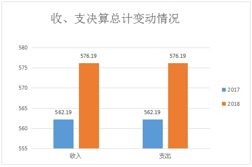 2018年度财收入总计576.19万元。与2017年562.19万元相比,收入总计增加14万元,增长2.49%。主要变动原因是政策性调资。