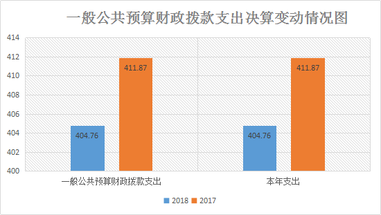 2018年一般公共预算财政拨款支出404.76万元,占本年支出合计的100%。与2017年相比,一般公共预算财政拨款减少7.12万元,下降1.73%。主要变动原因是业务费减少。