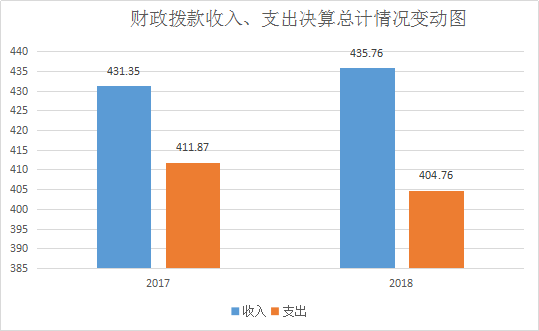 2018年度收、支总计435.76万元。与2017年相比,财政拨款收、支总计各增加4.41万元,1.02%。主要变动原因是人员增加,经费增加。