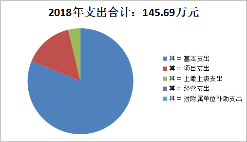2018年本年支出合计145.69万元,其中:基本支出118.09万元,占81.24%;项目支出21.87万元,占15.05%;上缴上级支出5.4万元,占,3.71%;经营支出0万元,占0%;对附属单位补助支出0万元,占0%。