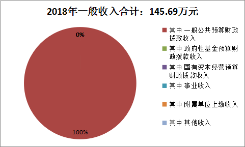 2018年本年收入合计145.69万元,其中:一般公共预算财政拨款收入145.69万元,占100%;政府性基金预算财政拨款收入0万元,占0%;国有资本经营预算财政拨款收入0万元,占0%;事业收入0万元,占0%;经营收入0万元,占0%;附属单位上缴收入0万元,占0%;其他收入0万元,占0%。