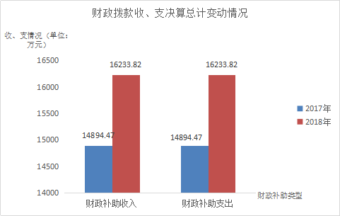 2018年度收入总计16233.83万元,与2017年相比,收入总计增加1339.36万元,增加9%。主要变动原因是一般公共预算财政拨款和财政应返还额度增加。