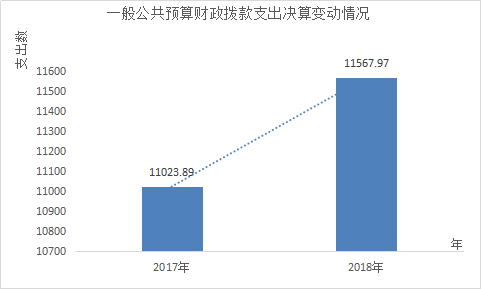 2018年一般公共预算财政拨款支出11567.97万元,占本年支出合计的99.59%。与2017年相比,一般公共预算财政拨款增加544.08万元,增长4.94%。主要变动原因是基本支出和项目支出增加。