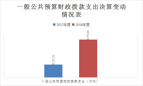 2018年一般公共预算财政拨款支出3,275.86万元,占本年支出合计的98.5%。与2017年相比,一般公共预算财政拨款增加4.5万元,增加0.1%。主要变动原因是主要变动原因是2018年支出执行了上年度结转数 (图5:一般公共预算财政拨款支出决算变动情况)(柱状图)