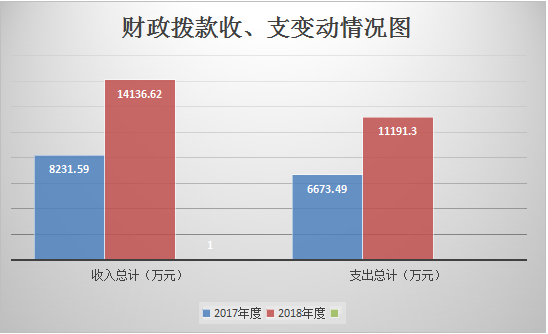 2018年财政拨款收入总计14136.62万元,与2017年相比,收入总计增加5905.03万元,增长71.74%。主要变动原因是基本支出中人员工资调标及医疗保险、住房公积金的预算比例提高;项目支出中精准扶贫工作的“五个一批”中低保兜底,残疾人低保对象困难生活补助,优抚对象、在乡复员军人生活补助、伤残抚恤补助标准调增,新建儿童福利院及县社会福利综合服务中心维修改造等;2018年度支出总计11191.3万元,与2017年相比,支出总计增加4518.81万元,增长67.71%。主要变动原因是人员工资调标及医疗保险、住房公积金的预算比例提高;项目支出中精准扶贫工作的“五个一批”中低保兜底,残疾人低保对象困难生活补助,优抚对象、在乡复员军人生活补助、伤残抚恤补助标准调增,新建儿童福利院及县社会福利综合服务中心维修改造等。
