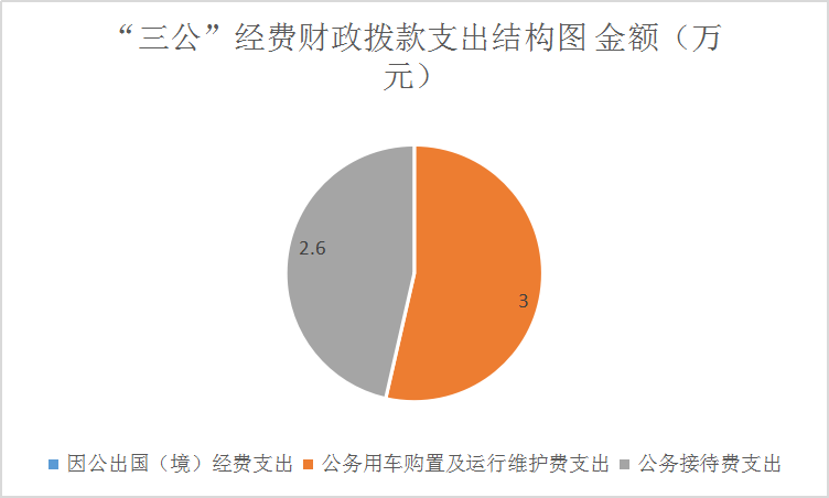 2018年“三公”经费财政拨款支出决算中,因公出国(境)费支出决算0万元,占0%;公务用车购置及运行维护费支出决算3万元,占53%;公务接待费支出决算2.6万元,占47%。具体情况如下: