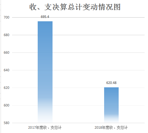2018年度收、支总计620.48万元。与2017年相比,收、支总计各减少74.92万元,下降10.8%。主要变动原因是2018年政府采购减少。