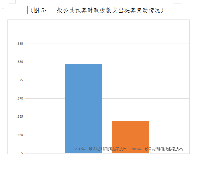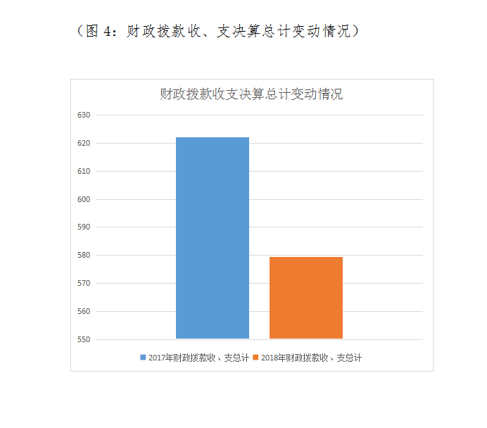 2018年财政拨款收、支总计579.51万元。与2017年相比,财政拨款收、支总计各减少42.71万元,下降7%。主要变动原因是2017年部分项目未完工,报账资金结转到2018年实现报账支出。(图4:财政拨款收、支决算总计变动情况)