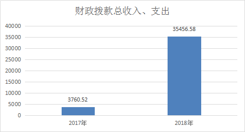 2018年度财政拨款总收入、支出35456.58万元。与2017年相比收入、支出总计增加35080.53万元增长825.38%。主要变动原因是项目资金增加。