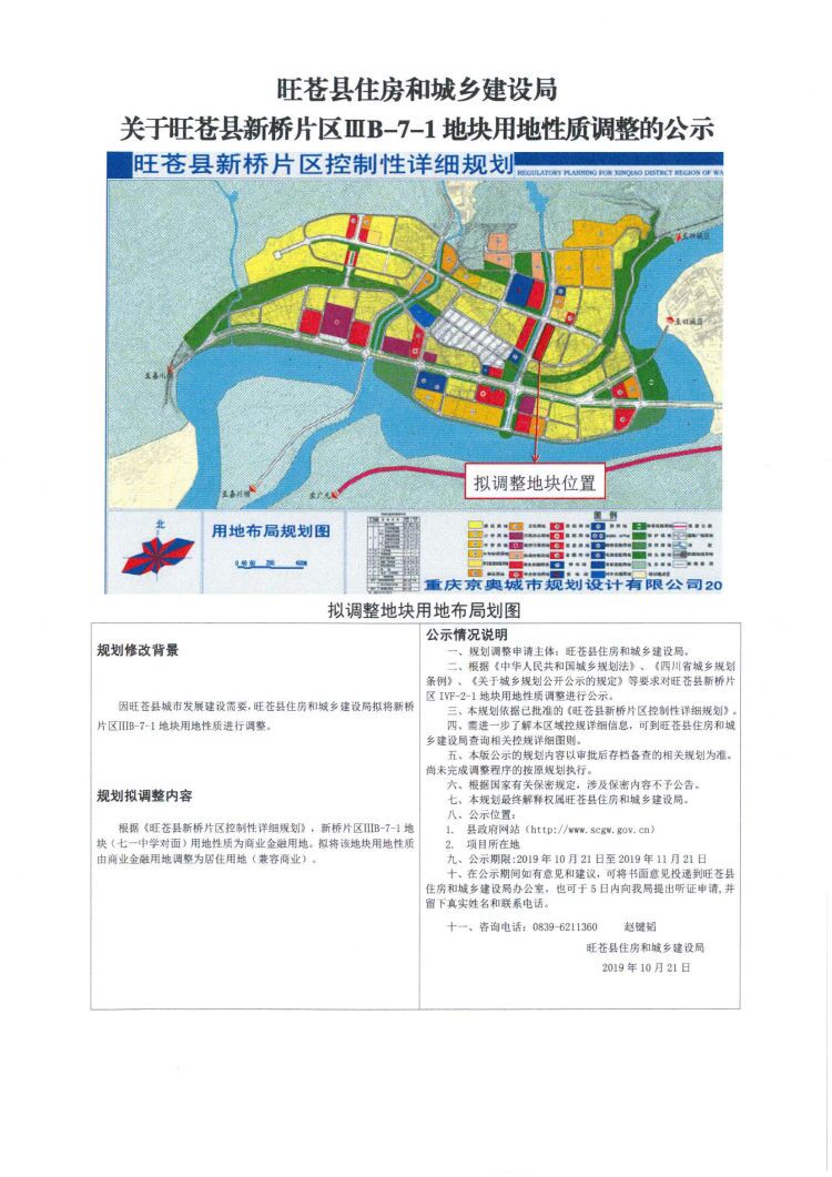 旺苍县住房和城乡建设局 关于旺苍县新桥片区ⅢB-7-1地块用地性质调整的公示