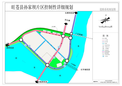 按照道路主要功能分类,规划区内道路分为:主干路、次干路和支路三个等级。其红线宽度分别为30米、18米和13.5米。道路主要为滨河路、长滩路南端、花果山南路和红祥路。规划区主要采取平面渠化的交通组织模式。