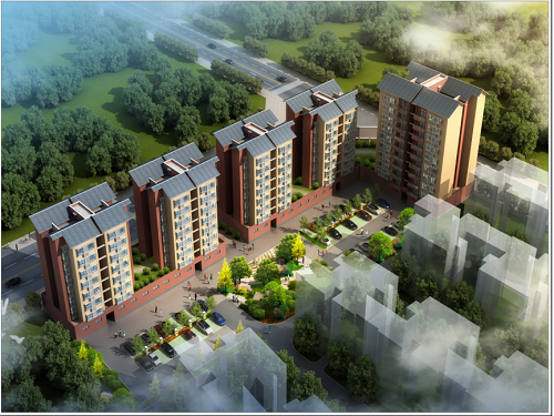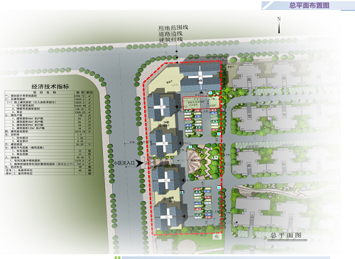 具体规划指标为:该项目总建筑面积13059.2㎡,其中住宅建筑面积10642.98㎡、物管用房建筑面积108.2㎡、商业建筑面积2308.02㎡。建筑密度35.29%,绿地率30.5%,容积率1.9(其中住宅部分1.55、商业部分0.35),建筑平均层数7F+1层,地面停车位48辆。