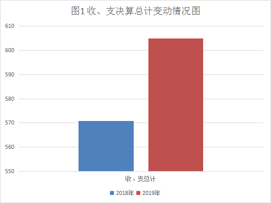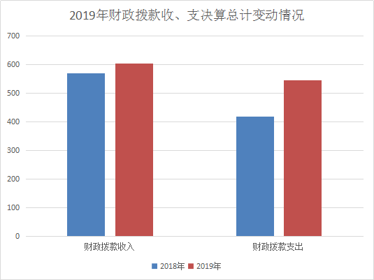 2019年度收、支总计604.97万元, 与2018年相比,收、支总计各增加34万元,增长5.96%,主要变动原因是上年加快资金支付。