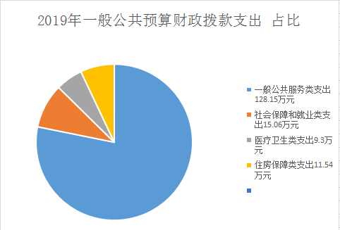 2019年一般公共预算财政拨款支出164.06万元,主要用于以下方面:一般公共服务(类)支出128.15万元,占78.11%;教育支出(类)0万元,占0%;科学技术(类)支出0万元,占0%;社会保障和就业(类)支出15.07万元,占9.2%;医疗卫生支出9.3万元,占5.6%;住房保障支出11.54万元,占7%。