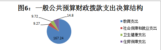2019年一般公共预算财政拨款支出201.03万元,主要用于以下方面:教育支出(类)167.24万元,占83.19%;社会保障和就业(类)支出9.27万元,占4.61%;卫生健康支出9.72万元,占4.84%;住房保障支出14.80万元,占7.39%。